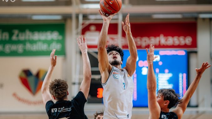 Drei MBA-Teams, 120 Minuten Basketball und verdammt viel Spannung: Der Tripleheader in der SWH.arena in Halle stellte große Talente der Region gemeinsam ins Scheinwerferlicht. Mit dem besten Gefühl ging die U16 der Mitteldeutschen Basketball Academy aus diesem besonderen Tag. Das Team von Trainer Alvaro Zuniga bezwang Science City Jena mit 93:74 (51:34) und feierte damit im dritten Spiel der Jugend-Basketball-Bundesliga (JBBL) den dritten Sieg.